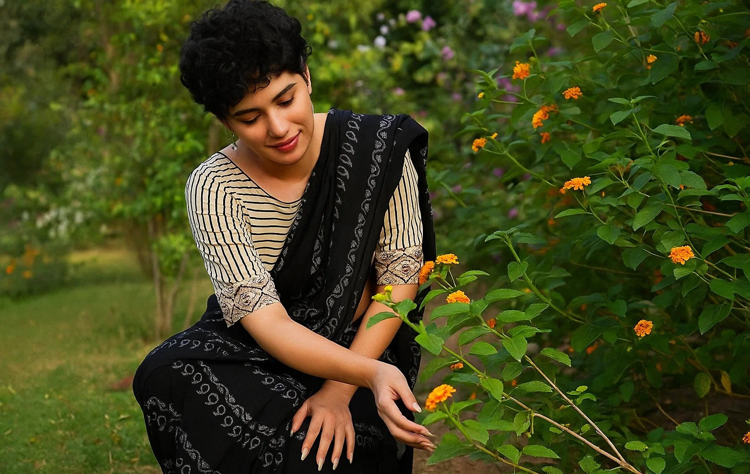 Elegant Floral Printed Cotton Saree with Ajrakh Inspired Border – Soft & Lightweight